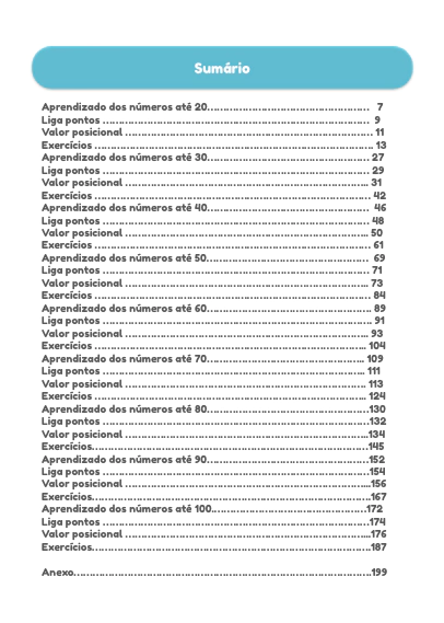 É preciso que a criança, muito além de saber contar, compreenda como são formados os números do nosso sistema numérico. Os números de 0 a 9 são utilizados para formar outros números, assim como as letras formam as palavras. Neste volume, trabalhamos com o domínio dos números maiores do que 10.
