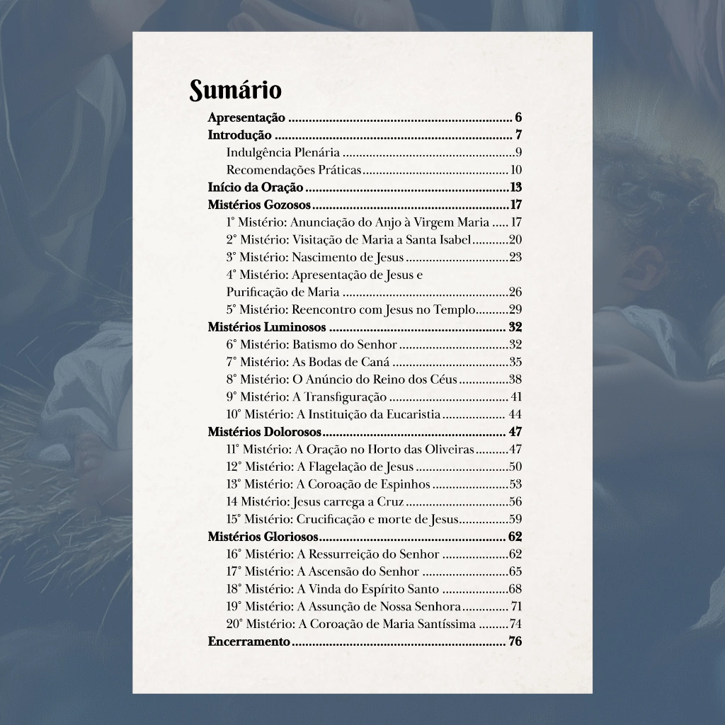 3. Aprofundamento da Fé: Ajuda o leitor a ir além da simples recitação, promovendo uma meditação profunda sobre os mistérios da vida de Cristo e Maria.
